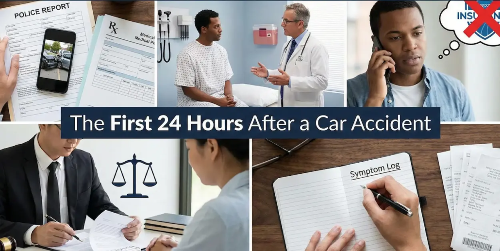 Being involved in a car accident is stressful, and once the immediate danger has passed, the next 24 hours are critical, especially if you’re considering a personal injury claim. How you handle that first day can affect your ability to recover damages for medical bills, lost wages, and even court.